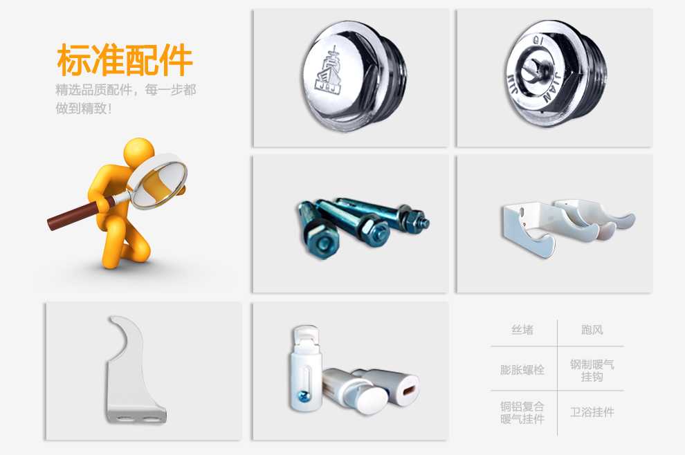 铜铝复合暖气片钢制暖气片,一体成形,无焊点,水流量大,寿命长,造型美观;具有热稳定性好,附着力强,耐腐蚀强,耐久性高、光泽度强,钢制暖气片5年质保,只换不修。