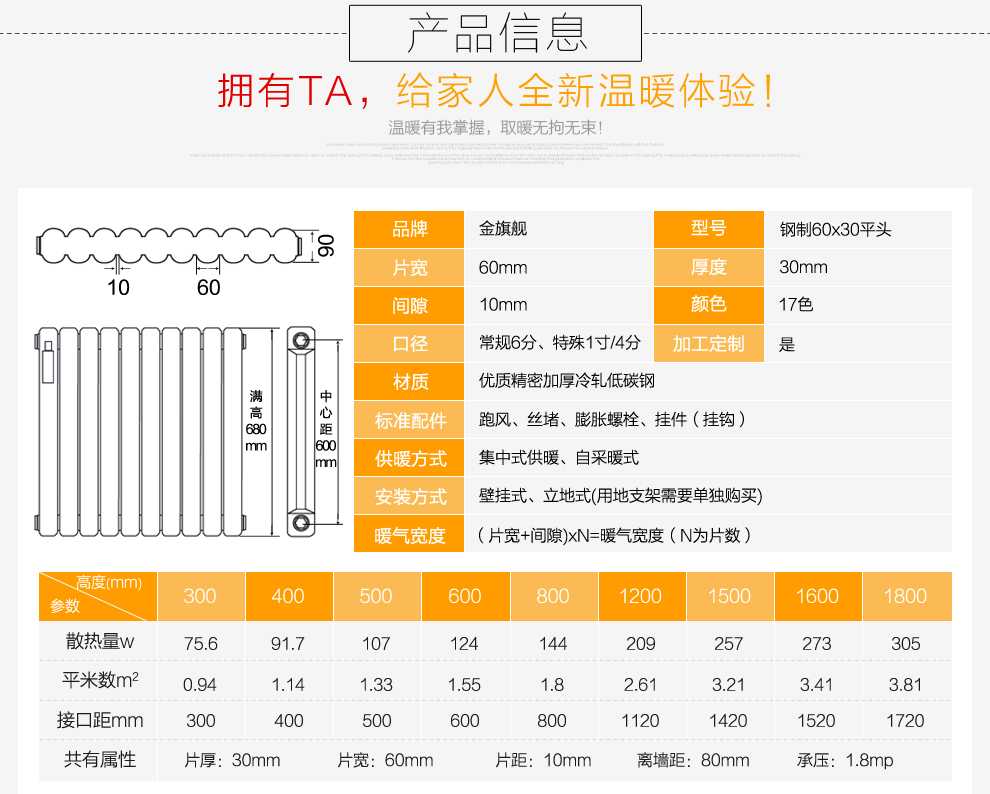 铜铝复合暖气片钢制暖气片,一体成形,无焊点,水流量大,寿命长,造型美观;具有热稳定性好,附着力强,耐腐蚀强,耐久性高、光泽度强,钢制暖气片5年质保,只换不修。