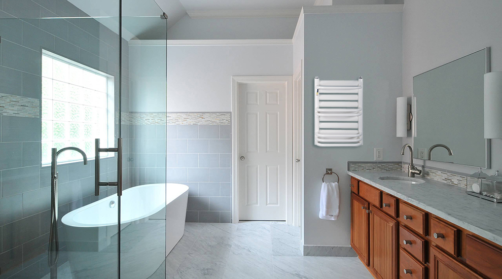 现在的卫浴暖气片不想已经的老款卫浴暖气片,现在的卫浴暖气片美观度做的很好,造型精巧、而且表面光滑细腻,整体给人简洁大气的感觉,安装在卫生间里犹如一件精美的艺术品,完美的诠释家居生活的舒适与典雅;此外,在安装时,有专用托卡和精致配件托悬暖气片挂在墙壁上,不会占用过多的空间,使卫浴间显得更加整洁,井然有序。